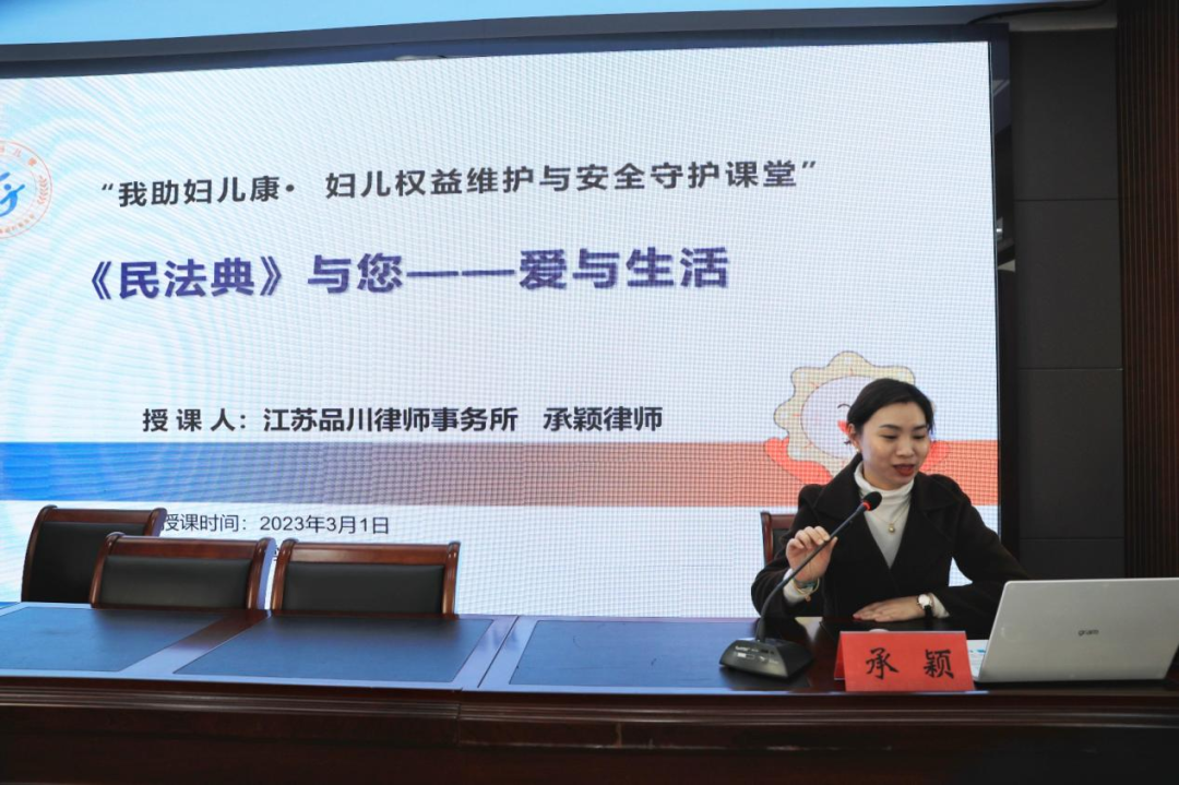 活动当天,有幸邀请到江苏品川律师事务所合伙人承颖,由承律师为网格员们作《民法典与您--爱与生活》专题讲座。授课过程中,承律师图文并茂,外加案例形式,详细介绍了“买买买”格式条款陷阱、合规养犬、高空抛物、隐私权、夫妻权益等社会热点方面的女性权益保护。