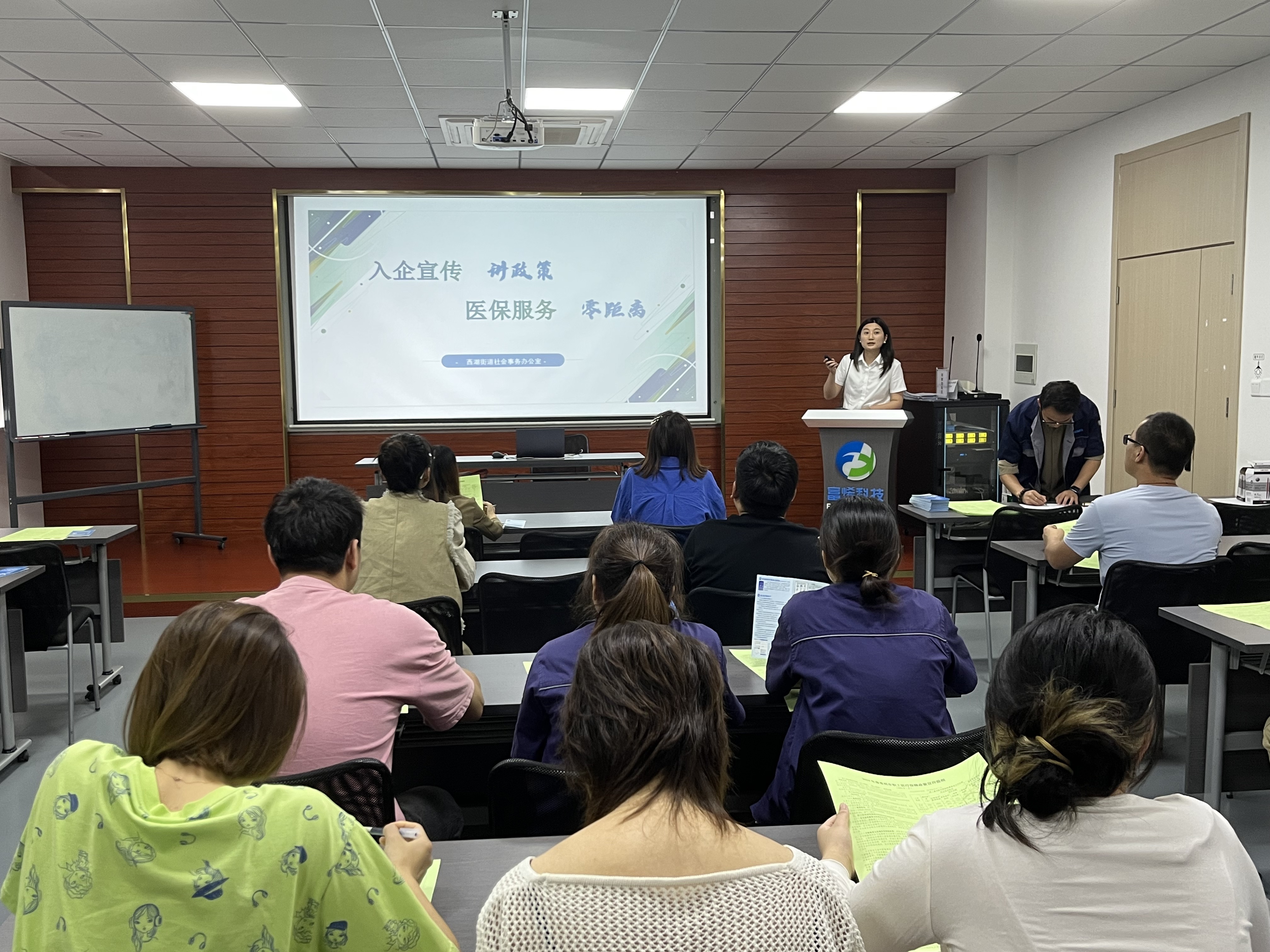 为进一步优化营商环境,提升企业和员工对医保政策的知晓度,9月26日,西湖街道社会事务办公室工作人员走进园区重点企业——常州富烯科技股份有限公司,开展医保政策进企业宣传活动。