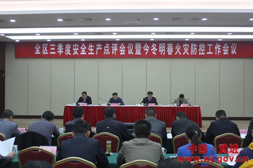 会议首先以视频专题片的形式回顾总结了三季度安全生产工作情况,接着通报了全区安全生产三季度点评工作情况及下一步工作打算。会议指出,三季度正值夏季高温季节,全区各级各部门按照“党政同责、一岗双责、齐抓共管”的原则,结合本地区本单位实际情况,通过多种形式,不断强化安全生产责任的落实。尤其是天津“8•12”事故后,区委区政府下发了《关于进一步做好当前安全生产工作的紧急通知》,并召开全区安全生产工作会议,同时区四套班子领导分五组对全区重点行业和领域进行全面督查,全区安全生产各项工作稳步推进。会议认真分析了当前我区安全生产工作中存在的问题,主要包括生产事故发生概率依然较高、安全生产目标任务进度不一、安全教育培训工作参差不齐、一线员工安全防护意识淡薄、安全生产大检查和专项整治行动还不够深入等方面。