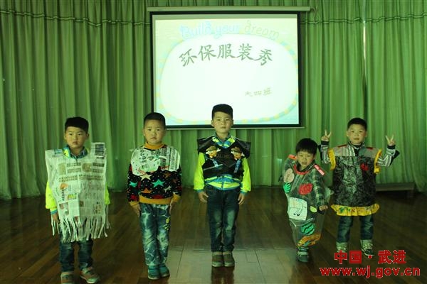 一张张废桌布、一只只空瓶子……伴随着动感的音乐旋律,小朋友穿着用废弃纸皮箱、扑克牌、丝巾、旧光碟、旧报纸、塑料袋等原料做成的衣服,进行了一场劲爆的时装表演,在舞台上展示了环保理念带来的活力和生机。