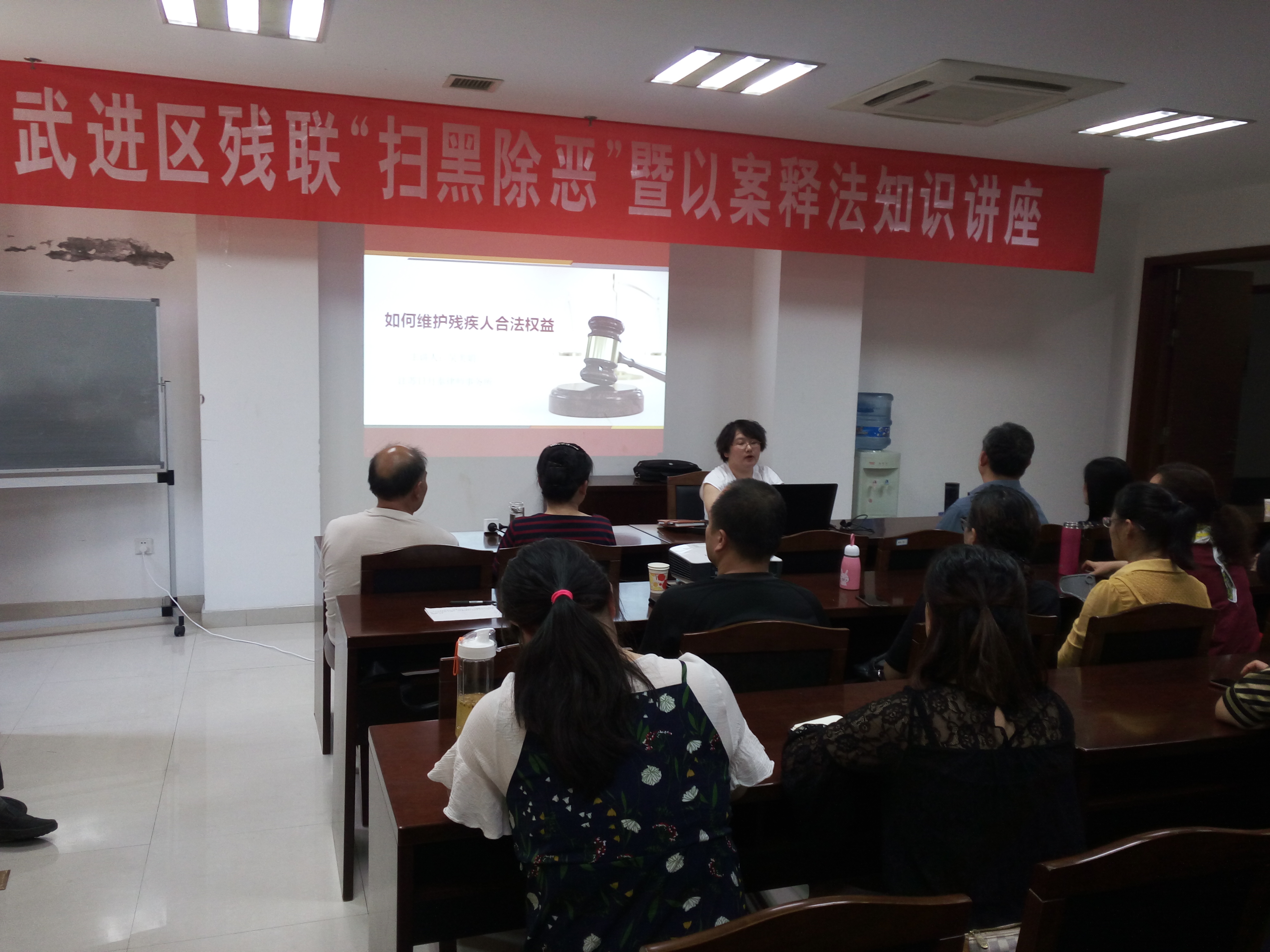 为配合推进扫黑除恶工作,增强残疾人防范意识,在扫黑除恶工作中发挥出残疾人主体作用,5月23日下午,湟里镇残联5名残疾人代表参加了武进区残联举办的扫黑除恶暨以案释法知识讲座。
