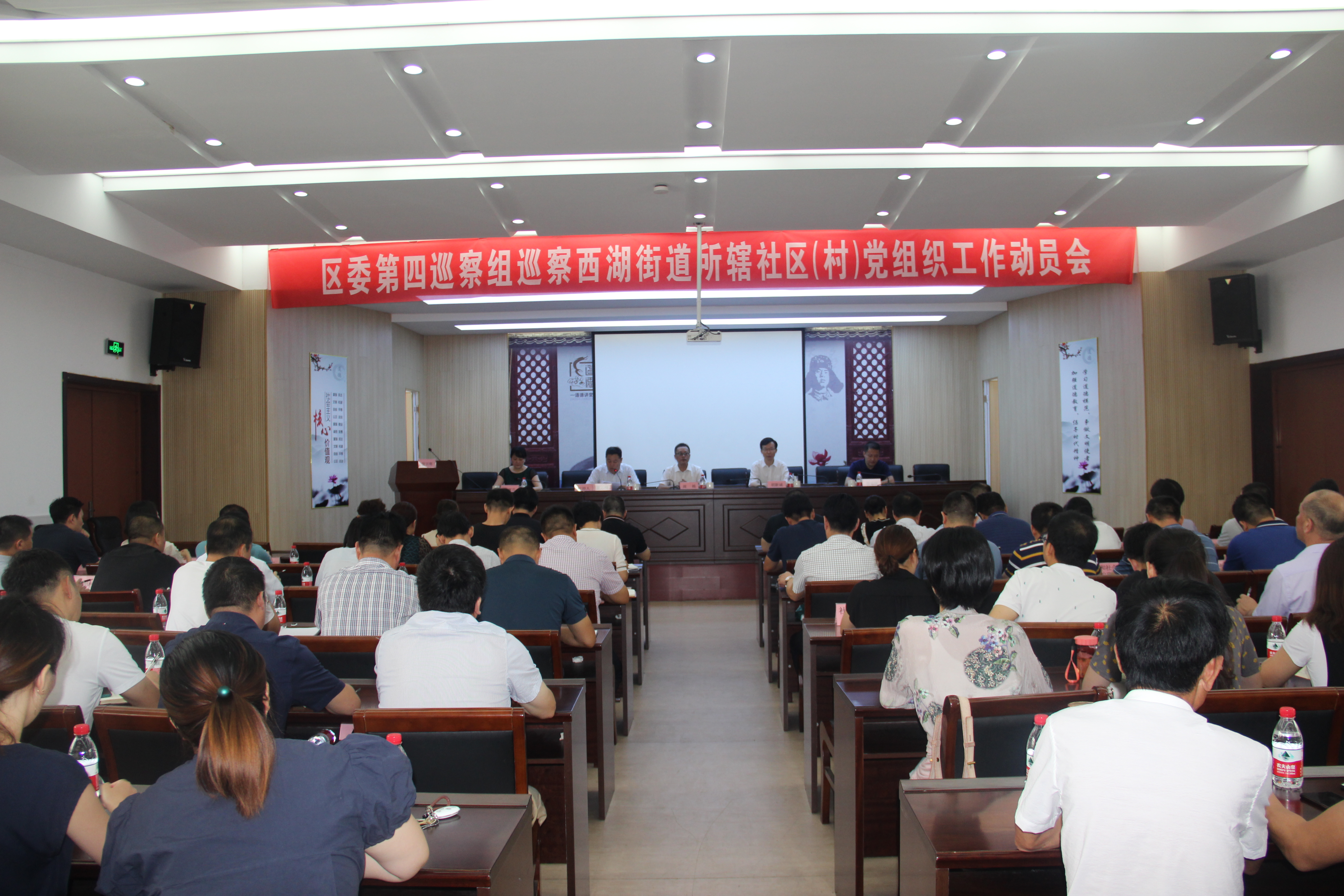 根据区委巡察工作的安排,8月10日上午9:00,区委第四巡察组巡察西湖街道所辖社区(村)党组织工作动员会在西湖街道召开,对即将正式开始的巡察工作进行专门部署。区委巡察工作领导小组成员、区纪委常委、区委巡察办副主任周栋,区委第四巡察组组长胡新诚,区委第四巡察组副组长管勇钢、徐寒芬,区监委第二派出监察员办公室主任郑东明以及区委第四巡察组其他成员出席会议,参加会议的还有西湖街道领导班子全体成员、各局室副局长以上人员以及各社区(村)“两委”班子全体成员。会议由西湖街道党工委书记董云峰主持。