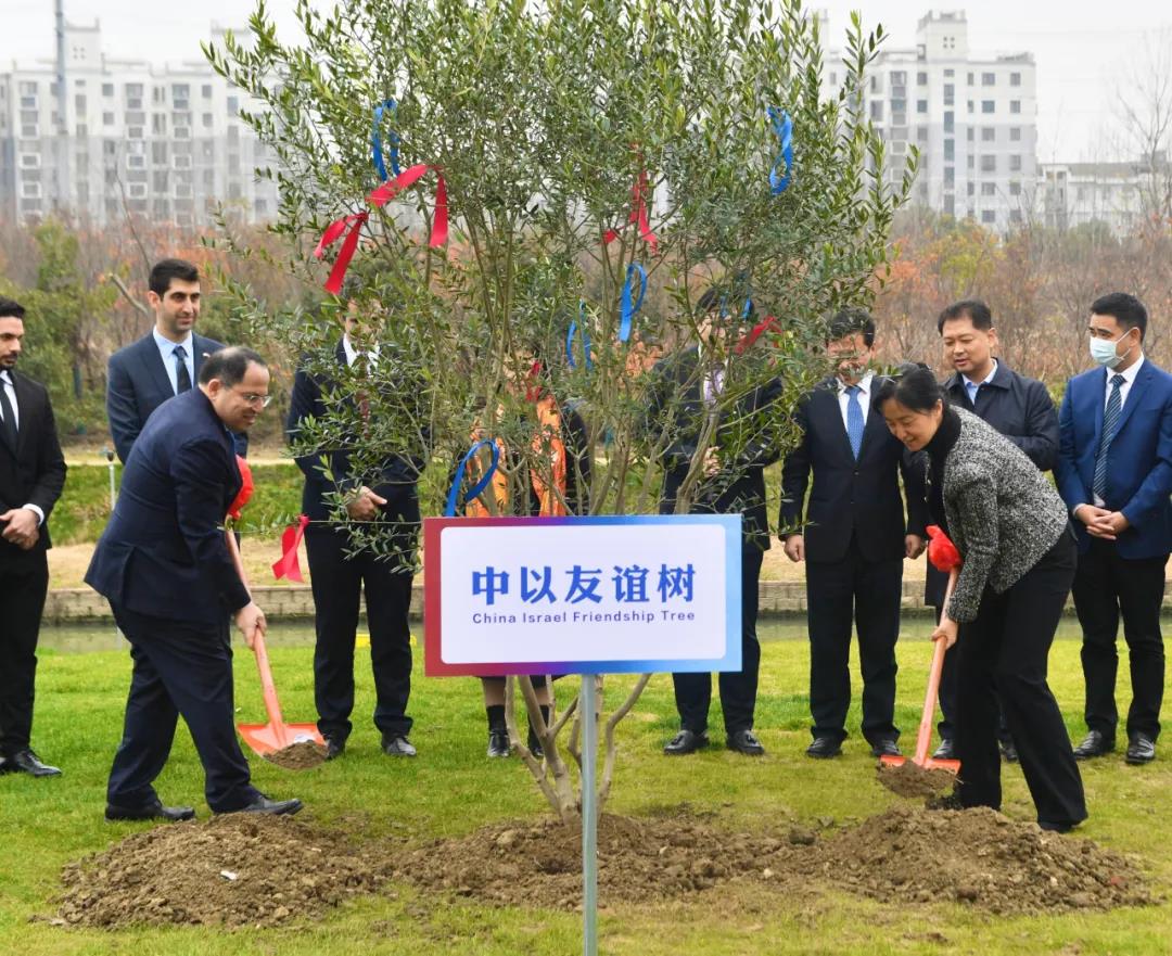 在中以国际创新村,盛蕾和爱德华还共同植下一株油橄榄树。油橄榄树是以色列的国树,根植于以色列的历史文化民俗之中。这株友谊之树象征中以两国友谊欣欣向荣,寓意中以常州创新园茁壮成长、蓬勃发展、根深叶茂。