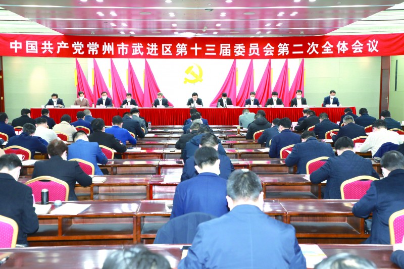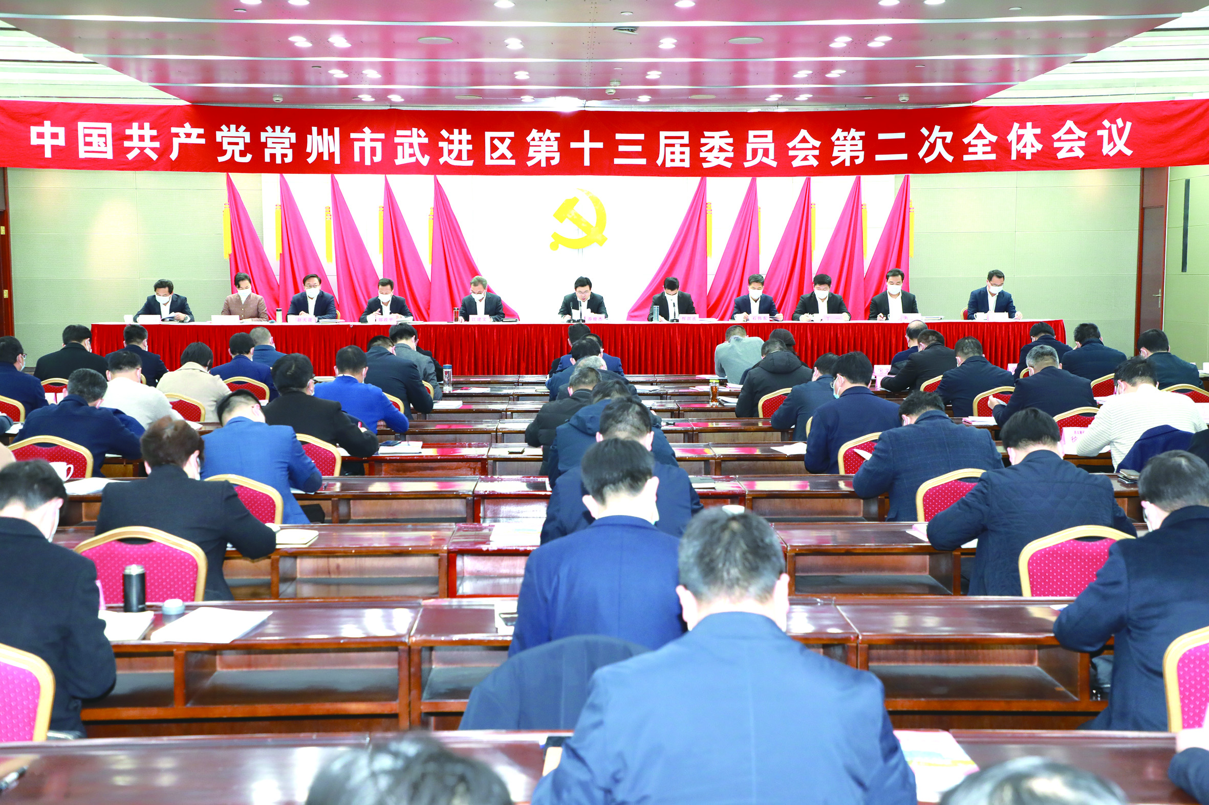 全会由区委常委会主持。市委常委、区委书记乔俊杰代表区委常委会向全会作了题为《贯彻“532”发展战略 争当现代化建设标杆 以高质量发展优异成绩向党的二十大献礼》的报告。全会分组讨论了全会工作报告。全会审议并通过了《中国共产党常州市武进区第十三届委员会第二次全体会议决议》。