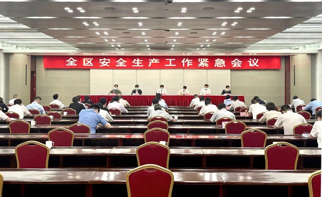 5月25日下午,区委、区政府召开全区安全生产工作紧急会议,深入贯彻落实习近平总书记关于安全生产的重要指示精神,全面落实好党中央“疫情要防住、经济要稳住、发展要安全”重大要求,认真落实中央和省委、市委安全生产有关工作要求,传达全市安全生产工作会议精神,深刻吸取我区“5·24”瓶装液化气泄漏爆炸事故教训,深入排查化解各类安全风险隐患,以最坚强有力的手段、最扎实有效的措施,推动全区安全生产形势持续稳定向好。市委常委、区委书记乔俊杰主持会议并讲话。区委副书记、区长恽淇丞作工作部署。