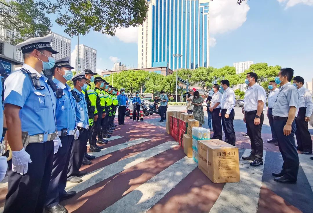 在常武路与广电路交叉口的交警岗亭,乔俊杰叮嘱交警,高温天气要注意防暑降温,排班要科学合理,为市民安全出行创造良好的道路交通环境。