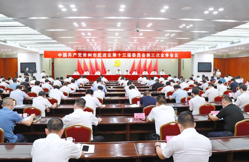 8月10日,中共常州市武进区委十三届三次全会在区行政中心举行。全会坚持以习近平新时代中国特色社会主义思想为指导,深入学习贯彻习近平总书记在省部级主要领导干部专题研讨班上的重要讲话精神和党中央的决策部署,认真落实省委工作会议、市委十三届四次全会精神,总结今年以来工作,部署下阶段任务,动员全区上下坚决扛起“勇挑大梁”的重大责任,深入贯彻“532”发展战略,全力推动“两湖”创新区建设,谱写“强富美高”新武进、现代化建设新篇章,以实际行动迎接党的二十大胜利召开。