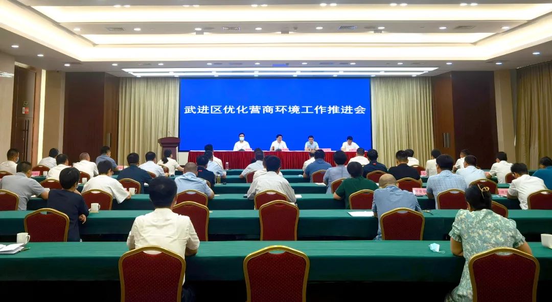 8月13日上午,我区召开优化营商环境工作推进会,总结上半年全区优化营商环境工作情况,研究部署下阶段重点任务。市委常委、区委书记乔俊杰出席会议并强调,全区上下要深入贯彻落实中央和省市关于优化营商环境的各项决策部署,认清目前形势,巩固现有优势,努力成就胜势,以营商环境的“进无止境”促进经济发展的“稳中求进”,为武进扛起“勇挑大梁”重大责任、打造“一园一城一示范”提供坚强支撑。区委副书记、区长恽淇丞主持会议,区委常委、副区长刘志峰通报上半年营商环境工作情况,常州科教城党工委委员、管委会副主任路军方参加会议。