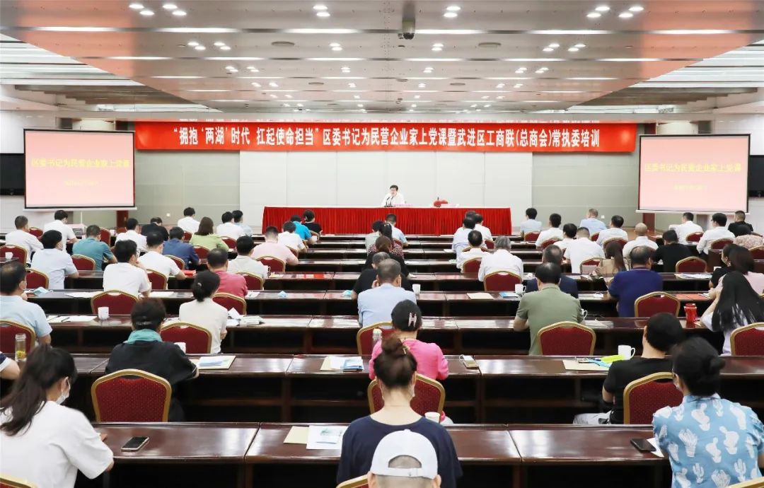 8月24日上午,市委常委、区委书记乔俊杰围绕“拥抱‘两湖’时代 扛起使命担当”的主题,为民营企业家上党课,从“两湖”创新区发展战略中寻找武进民营经济新的发展方向,从党的光辉历史中汲取武进民营企业发展的磅礴力量,激励民营企业家感党恩、担使命,做一流企业、创一流业绩,以实际行动迎接党的二十大胜利召开。区委常委、组织部部长赵天晟参加活动。