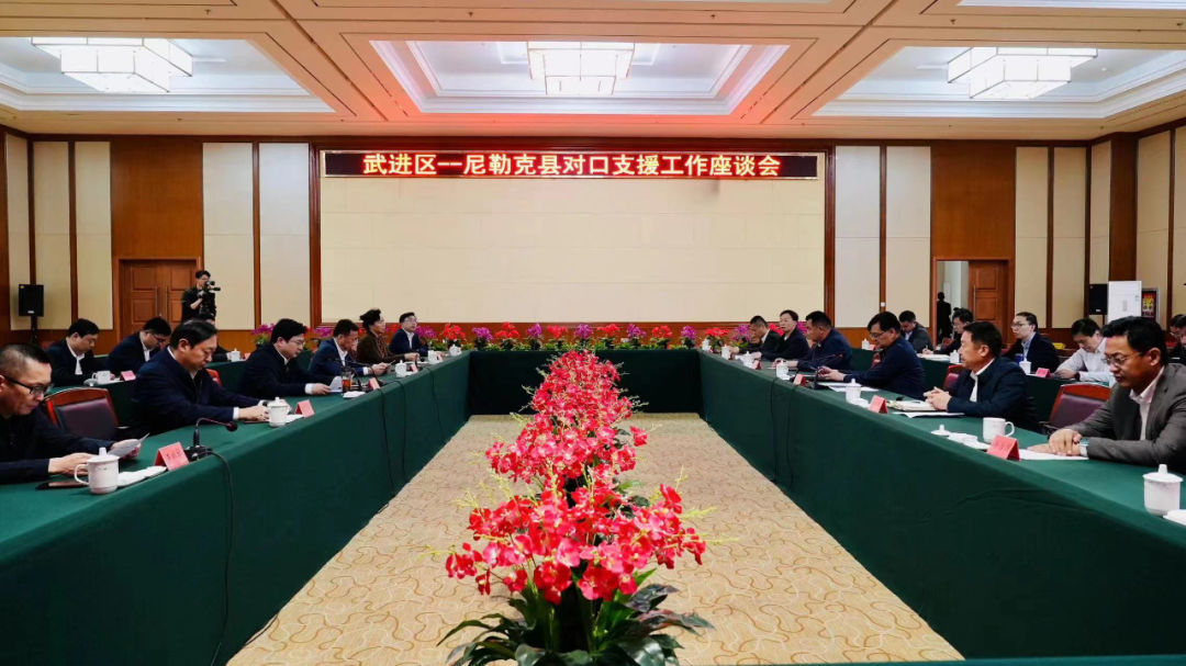 天山雪松根连根,尼武两地心连心。4月14日,市委常委、区委书记乔俊杰率武进区党政代表团赴新疆伊犁州尼勒克县考察交流。尼勒克县委书记马健一行对我区代表团的到访表示欢迎。双方就推动对口援疆工作迈上新台阶进行座谈交流。区领导郑政平、赵天晟、薛红霞、王晓航参加考察。武进区委常委、新疆尼勒克县委副书记、第十批武进援尼工作组组长徐治国,武进区副区长、第十一批武进援尼工作组组长贾东陪同座谈。