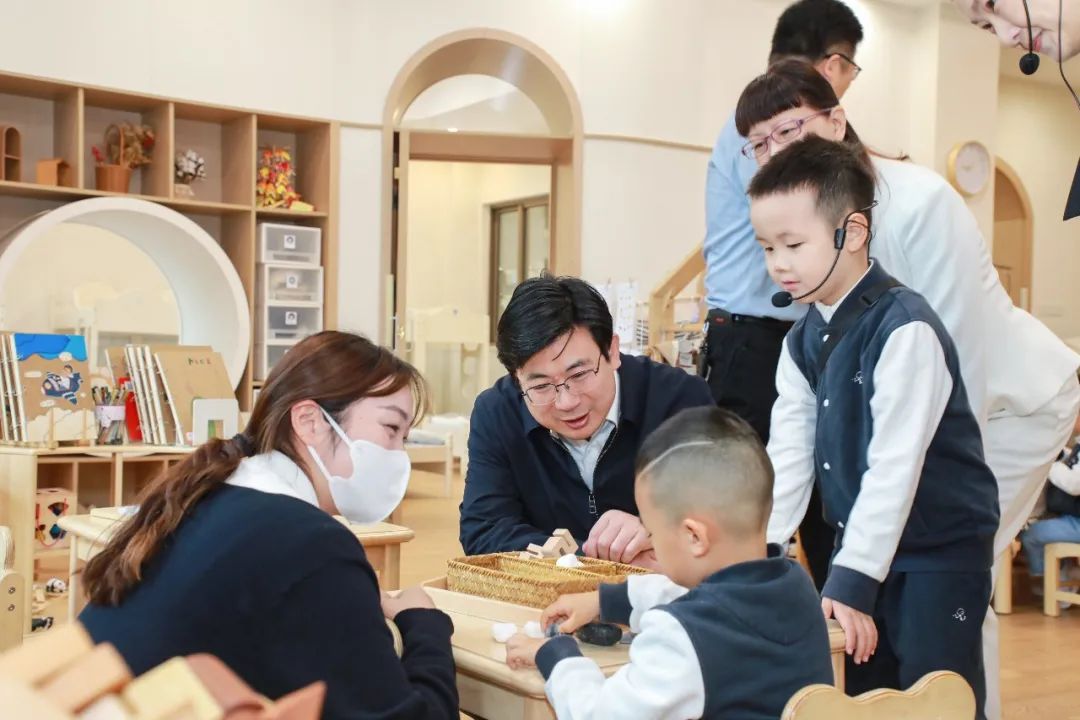 节前,区领导乔俊杰、薛红霞、张小虎一行来到武进区机关幼儿园府北实验园,了解学校的玩学日活动,观看小朋友们进行中国华服DIY、陶艺制作、戏剧表演以及美洲热舞等,不时为孩子们点赞,并对武机幼丰富多彩的课程活动表示肯定。乔俊杰指出,武机幼教育集团要积极发挥集团化办学优势,探寻儿童成长密码,注重品德教育和个性发展,继续高质量做好保育、教育工作;不断探索学前教育的新规律新特点,在孩子的性格、习惯养成上科学规划,帮他们逐步做到明大德、守公德、严私德;要把培育和践行社会主义核心价值观要求融入教育,以细致入微的关怀,引导少年儿童在人生旅途上选对路、起好步。