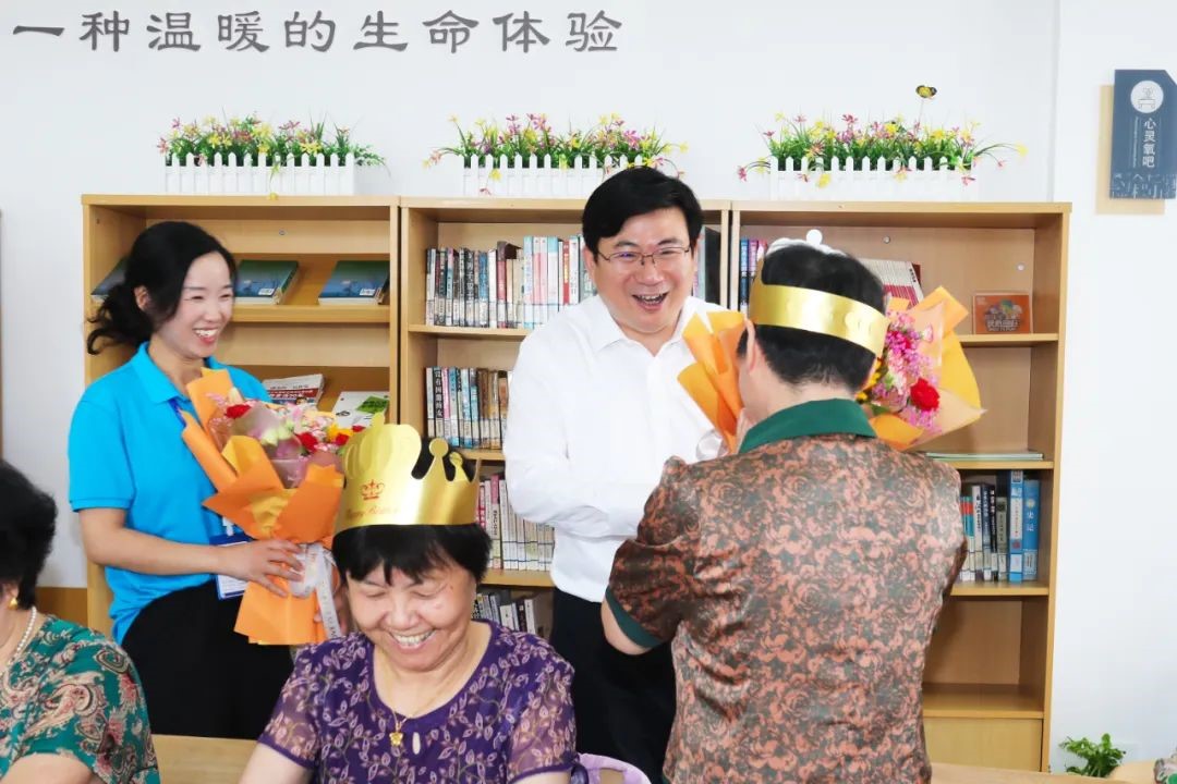 随后,乔俊杰一行来到西湖街道居家养老服务中心聚新站,与工作人员、老年人面对面交流,并详细了解硬件设施和运营管理情况。该站于2021年7月建成,配置日间照料室、康复理疗室、民俗博物馆、图书阅览室等场所,为老年人提供助洁、助浴、助医、助急等服务,同时积极开展各类文体活动。乔俊杰指出,要大力发展普惠型养老服务,引导社会资本参与养老服务,推动养老服务“线上+线下”融合发展,托起群众满满获得感、幸福感、安全感。要把更多资源、服务、管理放到社区,在设施建设、服务创新等方面积极探索,打造专业化、社会化的可复制、可推广的养老服务模式。