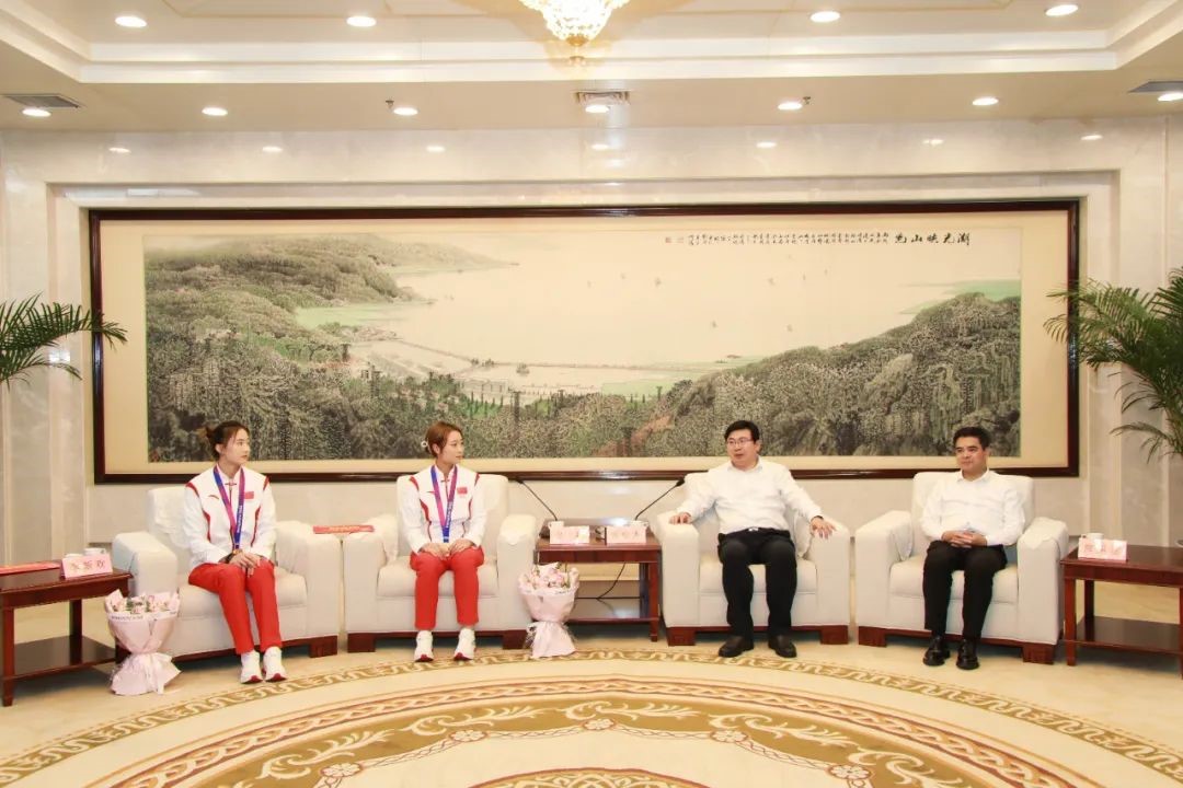 10月9日下午,市委常委、区委书记乔俊杰会见了载誉归来的杭州亚运会冠军、曲棍球运动员张影、李新欢。区领导恽淇丞、薛红霞、朱岩参加活动。
