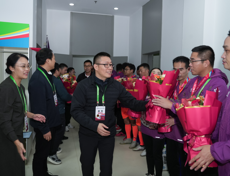 11月15日,2025常州市职工足球联赛决赛举行。赛后,区委书记沈东,区委副书记、代理区长薛晔专程前往球员休息室,亲切看望慰问了参赛的武进奥智集团队球员,对他们的拼搏精神表示充分肯定,并传递了区委、区政府的关怀。