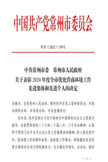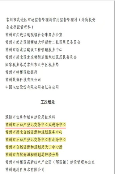 近日,常州市委、市政府表彰了2024年度全市优化营商环境工作先进集体和先进个人,武进不动产登记交易分中心凭借在便民利企、工改增效方面的突出表现荣获“先进集体”称号。