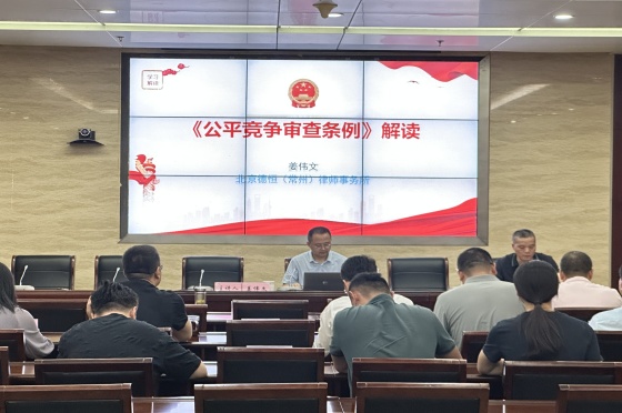 9月19日下午,武进自然资源和规划分局组织开展“公平竞争审查”培训讲座,北京德恒(常州)律师事务所党支部书记姜伟文律师担任本次的特邀主讲人。
