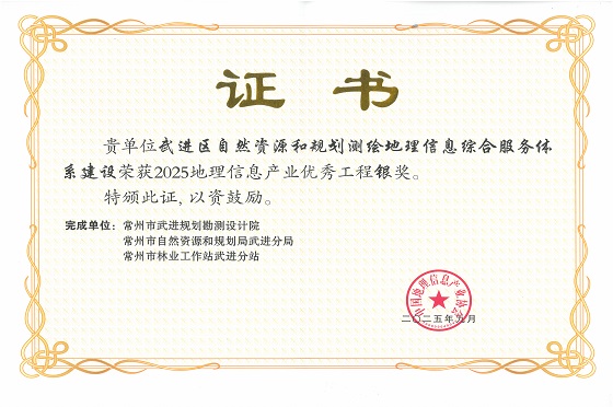 近日,中国地理信息产业协会正式公布2025年度地理信息产业优秀工程奖评选结果,由常州市武进规划勘测设计院精心完成的《武进区自然资源和规划测绘地理信息综合服务体系建设》项目凭借卓越的技术创新、完善的服务架构与显著的应用成效,成功斩获优秀工程奖银奖。该奖项是我国地理信息领域的最高荣誉之一,年度送评项目的获奖比例不足四成,充分彰显了项目在行业内的领先水平与广泛认可度。