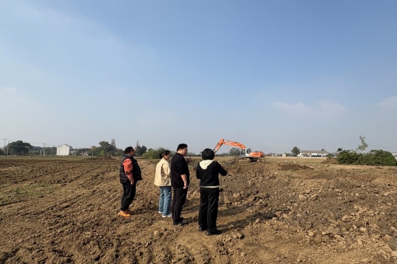 为深入贯彻落实市委办公室、市政府办公室下发的《关于开展统筹高标准农田建设和片区整治更新推进农业农村现代化试点工作的意见》文件精神要求,扎实推进乡村片区整治更新中的高标准农田建设全方位加强工作,新建农田沟渠路配套基础设施,朝东村高标准农田建设于今年9月开工,建设面积1350亩,总投资1100多万元,预计明年1月底完工,这将极大改善朝东村的农业生产条件,提升耕地质量与产能。前期,嘉泽服务站工作人员们通过出具项目区红线图,明确建设边界,梳理并核实占补平衡项目与增减挂钩项目中的可用地块,为项目立项与空间落地提供精准的规划与数据支持。后续通过现场巡查,仔细查看施工现场,实时跟踪工程推进情况。