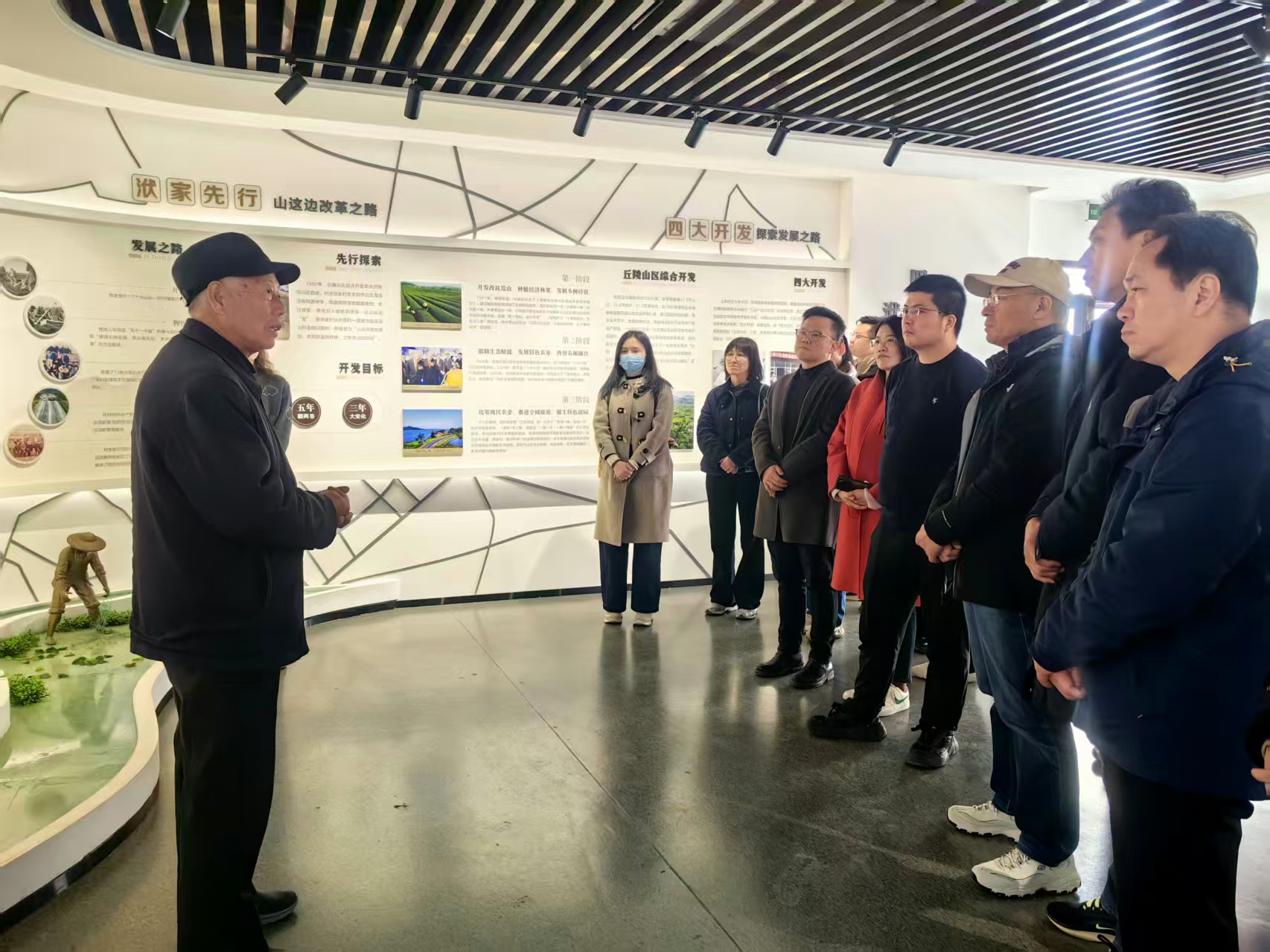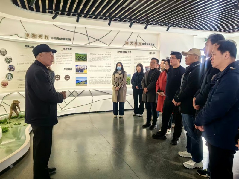 随后,队伍赴溧阳市洑家村,实地感受乡村振兴的生动实践。漫步村内,茶山叠翠、清水环绕,闲置农房变身文艺工作室,“新乡人”与原住民共绘发展蓝图,一幅“生态美、产业兴、百姓富”的画卷徐徐展开。洑家村原党支部书记、全国劳动模范、洑家村“山这边”精神的核心代表人物王海清书记结合洑家村退养800余亩青虾、以文旅融合和艺术赋能实现转型的实践历程,分享了基层党组织引领乡村治理、带动村民增收的宝贵经验,生动诠释了“党建强则乡村兴”的深刻内涵。大家与王海清书记深入交流,详细询问村级产业发展、民生服务等情况,近距离学习基层党建与乡村振兴深度融合的有效路径。