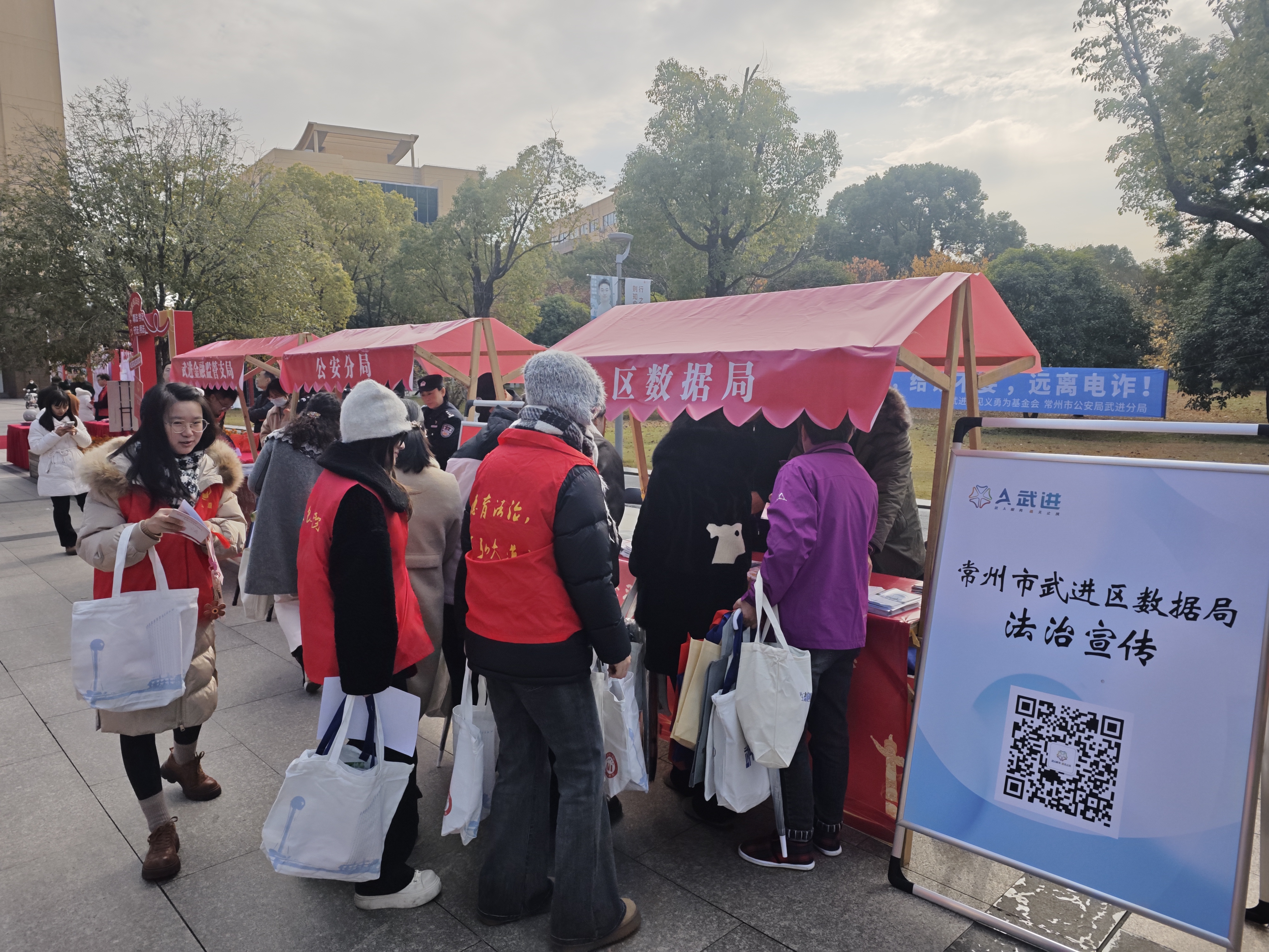在第十二个国家宪法日到来之际,为深入学习贯彻习近平法治思想和党的二十届四中全会精神,全面推进依法治国、依法治统,弘扬宪法精神,增强数据法治观念,武进区数据局严格落实“谁执法谁普法”普法责任制,派出普法宣传小组积极参加由区司法局举办的2025年国家宪法日校园普法宣传活动。