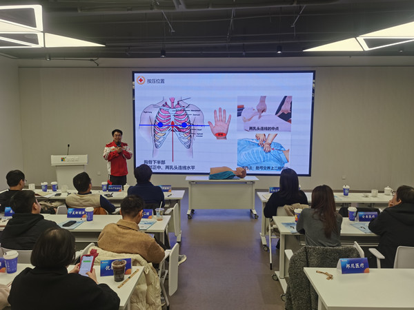 12月19日,在“HI创公益系列活动”中,武进区红十字会为参加活动的企业代表、园区服务人员送上了一份“安全技能礼包”,重点围绕企业生产生活中的安全隐患,通过“理论+实操”的方式,开展针对性急救教学,内容涵盖心肺复苏(CPR)、AED使用、气道异物梗阻急救等核心技能。几位阳湖救援队骨干队员、省级救护培训师资、省级应急救援员,手把手指导参加培训的企业代表,规范动作要领,传授技能心得,确保让每一位参训学员都能听得懂、学得会。