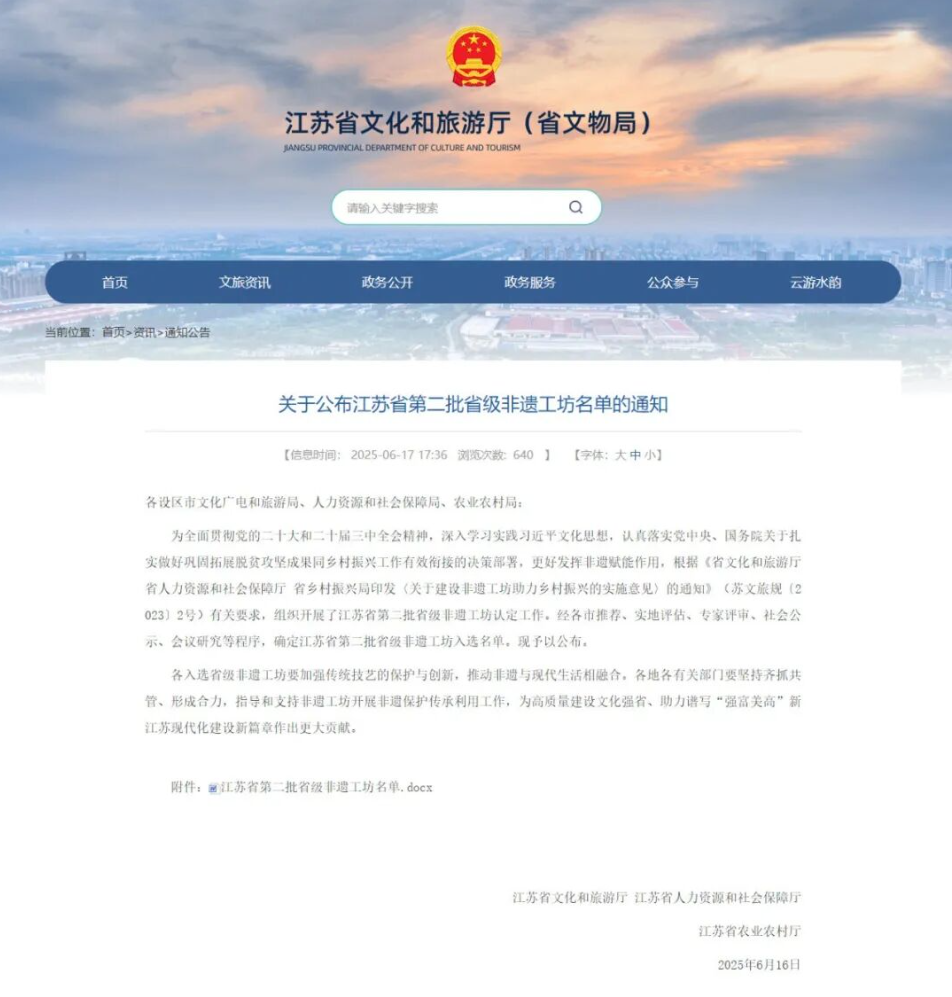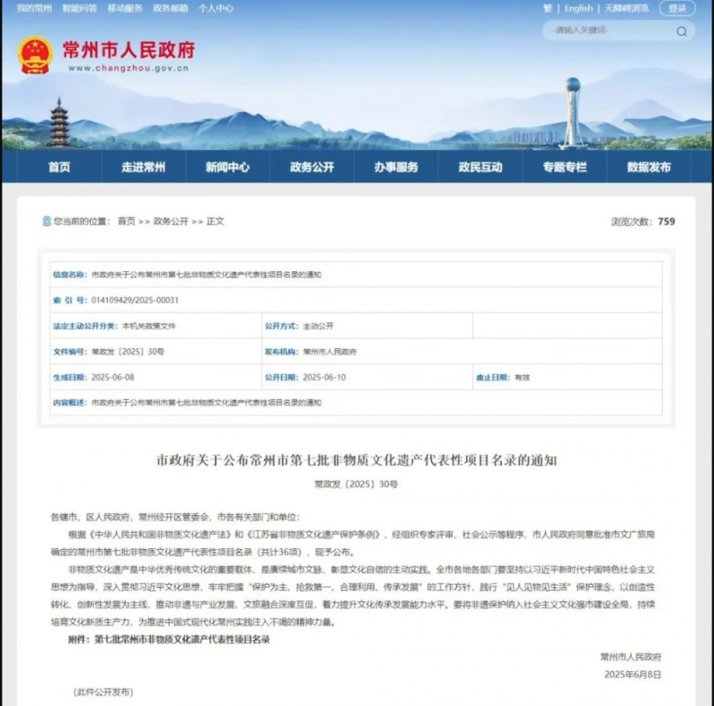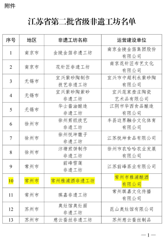 近日,市政府公布常州市第七批非物质文化遗产代表性项目名录,我区新增6个市级项目。省文化和旅游厅、省人力资源和社会保障厅、省农业农村厅公布江苏省第二批省级非遗工坊名单,常州雅浦酒非遗工坊入选,成为我区首家省级非遗工坊。