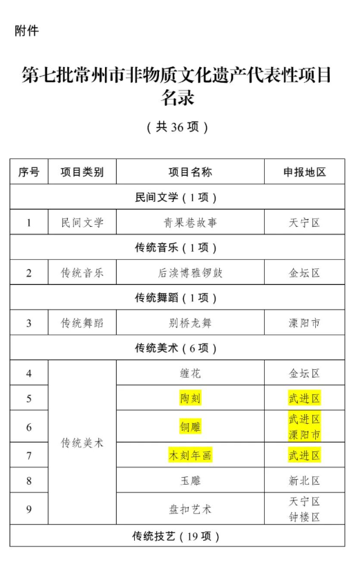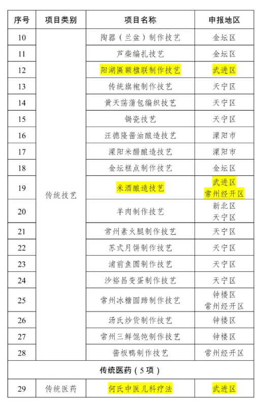 新增市级项目包括传统美术类3个(陶刻、铜雕、木刻年画)、传统技艺类2个(阳湖匾额楹联制作技艺、米酒酿造技艺)、传统医药类1个(何氏中医儿科疗法)。至此,我区市级非遗代表性项目达到19个。