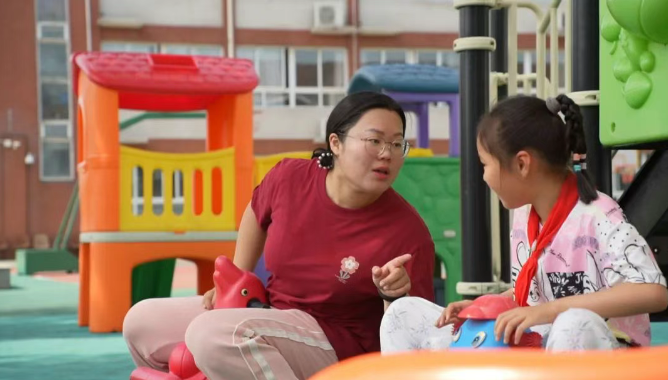 从手足无措到独当一面,四年教学生涯让赵灵艳成为“多面手”,数学、体育、康复训练样样精通。面对挑战,她总是迎难而上。插班生甜甜患有自闭症,刚来时特别不适应校园生活,经常一不留意就跑没影。在与甜甜妈妈深入沟通后,赵灵艳了解到孩子之前一直是一对一教学。于是,她为甜甜增加了个训课,根据孩子的情况有针对性地进行教学。经过一个多月的努力,甜甜终于能完整上完一节课。