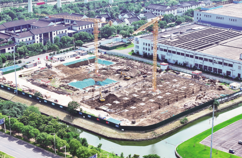 区重点项目常州创昊智能制造有限公司年产1万台污水处理搅拌设备、30万件衡器配件项目位于武进国家高新区,总投资1.5亿元,购置CNC加工中心、数控卷板机等设施设备168台(套)。目前,项目正在基础承台浇筑中,预计2026年8月竣工投用。图为项目航拍。