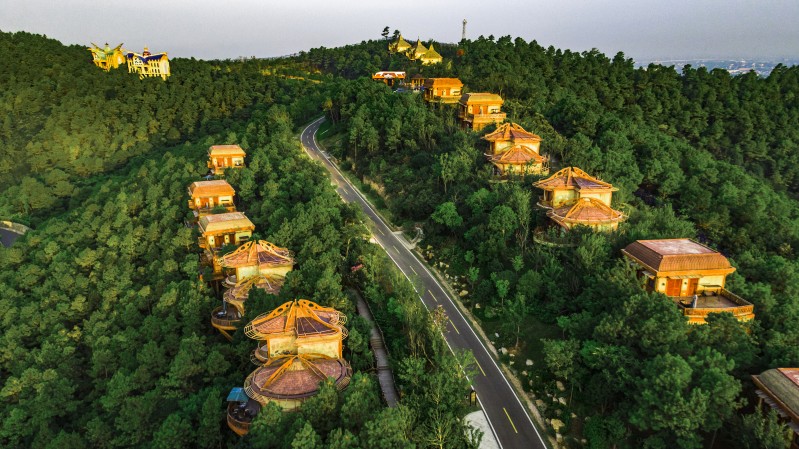 彷佛是《霍比特人》里精灵王国降临中土,在太湖湾嬉戏谷旁幽静的山脉上,极具异域风情和童话色彩的云中部落度假村就隐藏在这里。整个度假村独据一座山峰,百亩林地仅建造30套独具特色的树屋别墅,分别在海拔50-128米的向阳山坡,风格奇幻,造型各异,远望去宛如海市蜃楼般的云中秘境。
