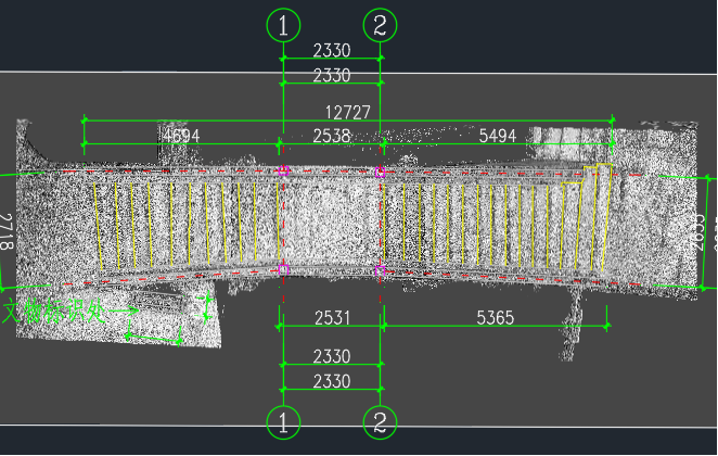 将采集到的原始点云数据导入数据处理软件中进行初始化处理,软件的初始化处理会有效降低采集过程中的随机误差噪点,将点云中的无效噪点去除,根据南杨桥结构和连接关系,进行点云数据分割,以提高海量数据分布式利用,增加效率。最后依照从整体到局部,从结构到设备的原则,逐步精确还原现场三维空间信息和单体设备等信息,输出点云模型文件以及正射影像图。