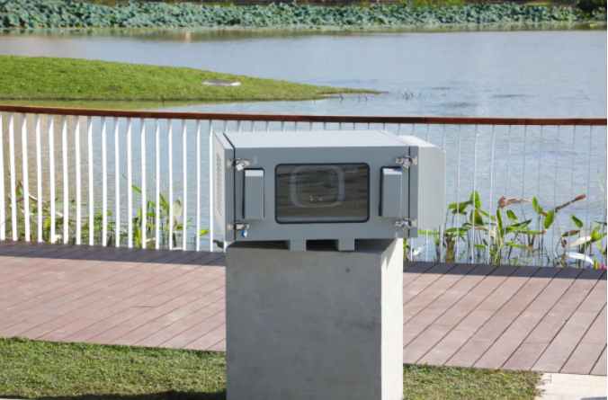 园内最引人注目的当属宽18米、高10米的“问月台”水幕投影景观。“‘问月台’延续了苏东坡在地文化脉络,运用数控技术、数控语言、数控投影等现代技术诠释传统文化,与一期苏东坡青铜雕像隔河呼应。”常州荣禾景观设计有限公司设计总监周丽燕介绍,夜幕降临时,水幕点亮,宛若明月升空,将完美再现《水调歌头》的意境之美。“公园正式开放后,在天气晴好的条件下,‘问月台’的水幕投影将根据不同季节的日落时间灵活调整播放时段,为市民提供最佳的观赏体验。”区市政公用事业管理处副主任何小军告诉记者。