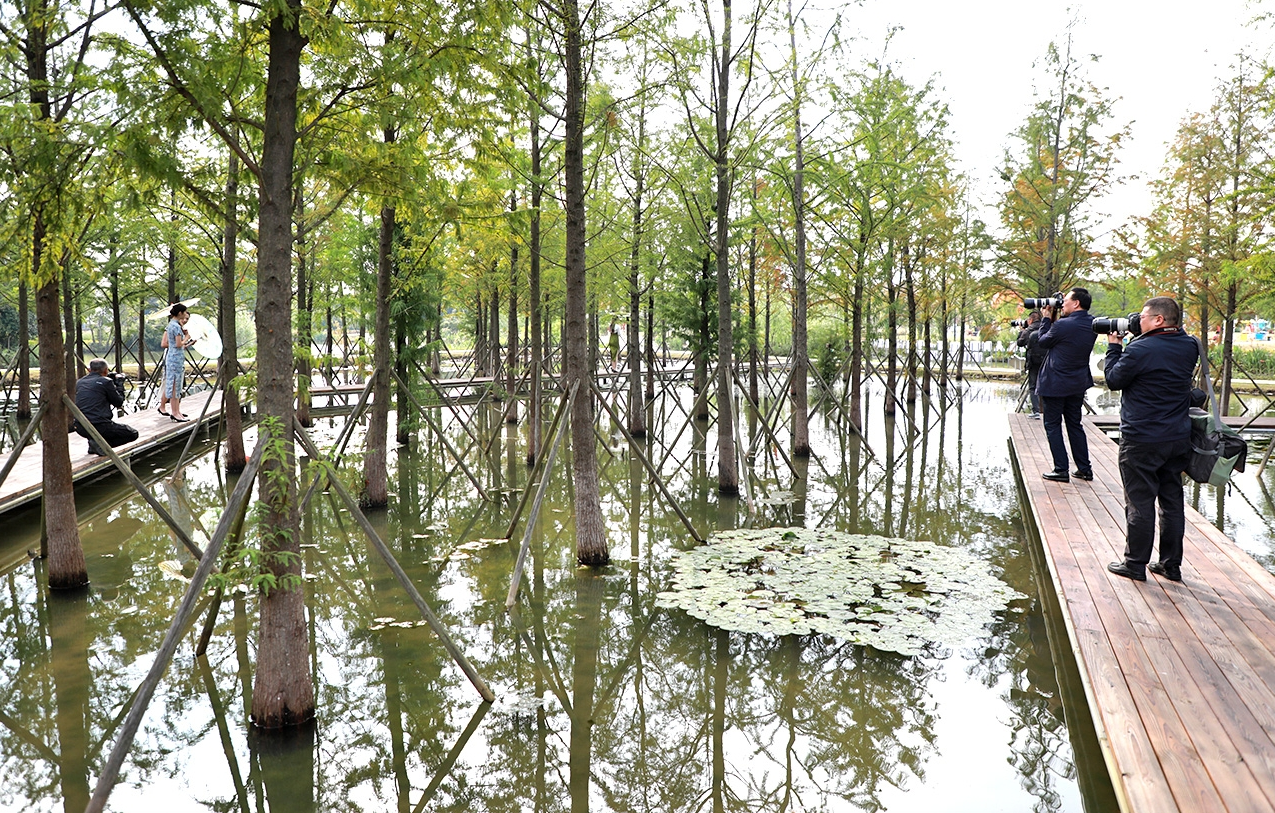 葛庄村是全国文明村,大塘湿地公园占地400亩,其中水域面积150亩,层次分明的湿地系统、满眼皆绿的生态长廊、自由畅游的鱼儿野鸭……自然生态的气息扑面而来。采风过程中,摄影家们深入感受大塘湿地公园的环水步道、亲水平台等地,全程以纪实视角捕捉生态细节。这些作品摒弃过度艺术化修饰,以最质朴的画面语言,呈现大塘湿地作为湟里镇“生态绿肾”的自然本底,也直观展现了当地对湿地生态系统的精细化保护成果。
