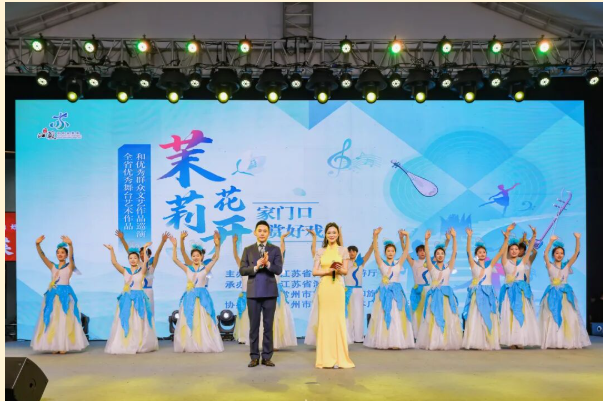 6月14日晚,常州市武进区T-PARK蓝海豚欢乐世界流光溢彩,“茉莉花开·家门口赏好戏”全省优秀舞台艺术作品和优秀群众文艺作品巡演常州武进站在此拉开帷幕。本次活动由江苏省文化和旅游厅主办,演出汇聚省内顶尖院团,精选多项省级展演及大奖获奖佳作,为武进市民打造了一场引人入胜的视听盛典,在彰显传统艺术魅力的同时,为文化传承与创新发展作出了鲜活的诠释。