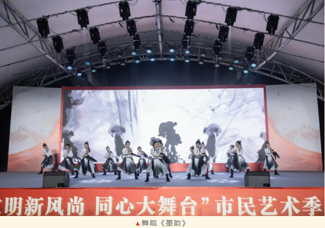 从战火走向和平,礼嘉人始终以匠心守护文脉,以实干建设家园。在“韶华・匠心润泽”篇章,各类节目尽显礼嘉的文化底蕴与创新活力。政平小学的舞蹈《墨韵》,以轻盈舞步勾勒江南水乡的典雅诗意,将水墨之美融入灵动舞姿;小品《司法践行疏胜堵 知识产权铸虹桥》通过幽默的演绎,让观众在笑声中感受法治对创新的守护,体会法治社会的温度与力量;一群可爱孩子带来的舞蹈《炫舞飞扬》,则以稚嫩却有力的舞步,展现出礼嘉少年蓬勃的生机与对未来的美好憧憬,彰显礼嘉的希望与活力。