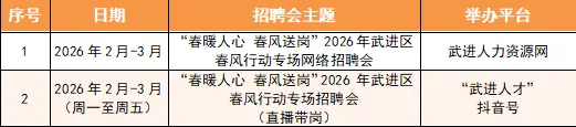 2026年“武进区公共就业新春招聘月”线上招聘会(直播带岗)安排表