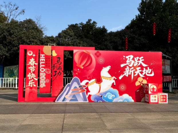 三是公园各出入口放置了欢度春节字样的展示牌,为入园游客提供宾至如归的新年游园体验。在举国同庆的良辰佳节,新天地公园愿成为一方风景如画、欢悦和美的人间乐土,陪伴武进城区人民共度马年新春。