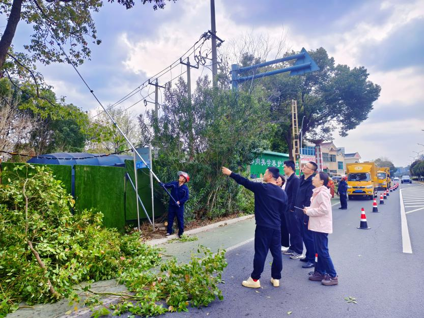 时值春日,万物复苏,3月23日,常州市武进区审计局在开展在开展区住建局领导干部经济责任审计中,聚焦市政道路绿化养护高质量发展,审计组前往辖区内市政道路,重点关注绿化养护项目。通过实地查看树枝修剪流程、与养护人员交流春季修剪人工成本、查阅项目资料等方式,了解市政道路绿化养护情况。审计建议加大对春季绿化修剪技术的创新运用,提高养护资金使用效益,以审计监督护航春季绿化养护,绘就城市春日生态画卷。(图为审计组在绿化养护现场查看树枝修剪情况。)