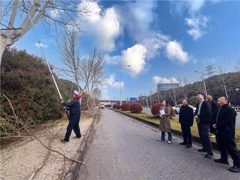 春风拂绿,万象更新。3月25日,武进区审计局在全区交通养护专项审计调查中,将道路沿线及配套绿化养护情况作为审计重点,重点核查绿化养护资金使用及质量考评情况,切实保障交通绿化管养资金使用规范与质效。审计组深入一线,对日常补植养护、修剪灌溉保洁等管养成效进行实地踏勘,以精准监督书写守护绿水青山的“春天答卷”。图为审计人员在绿化养护现场查看树木修剪情况。