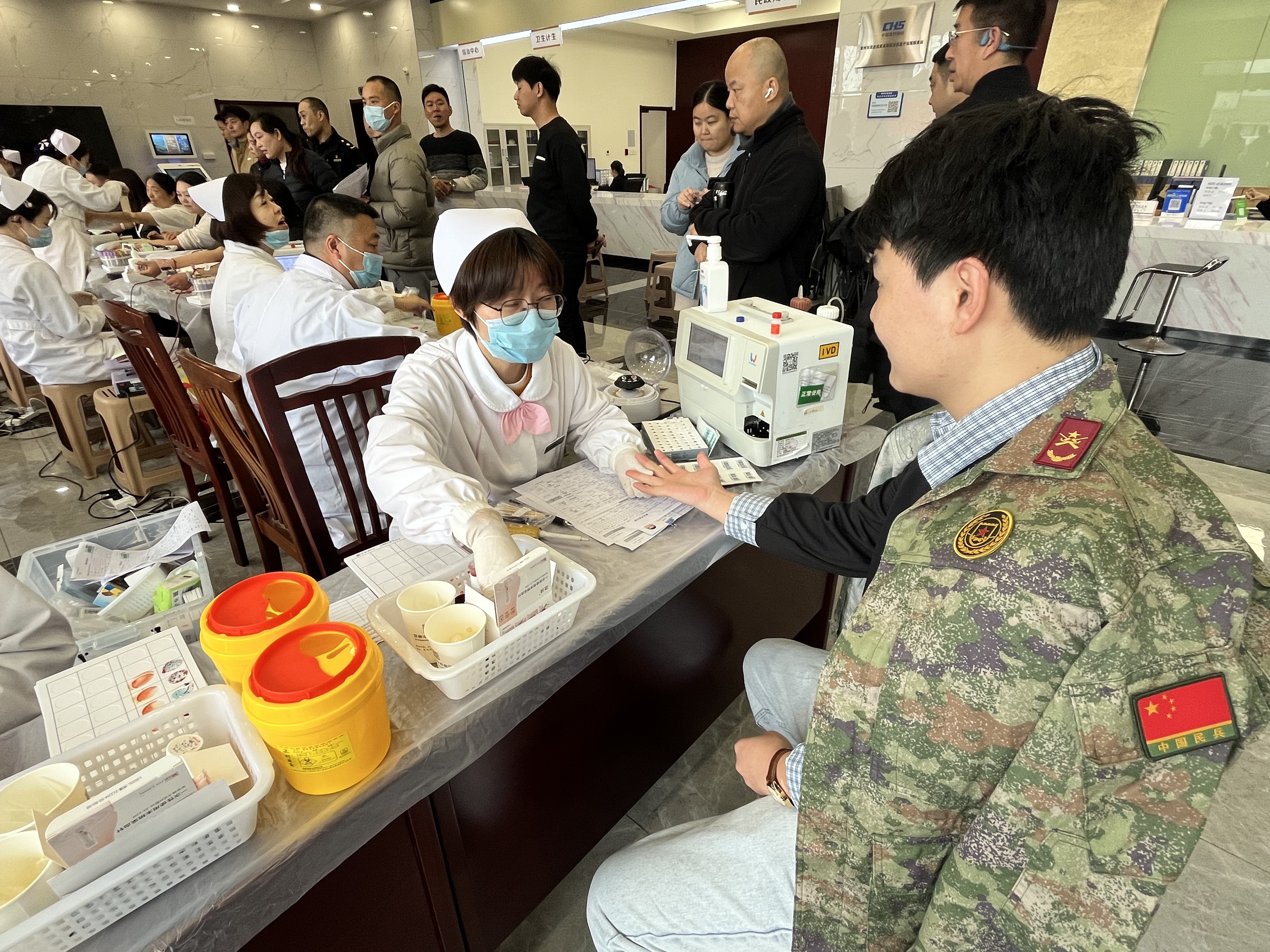 活动现场,退役军人在志愿者和医护人员的引导下有序排队,依次完成表格登记、征询体检、血液初筛、献血、领取献血证和感谢卡,整个献血过程井然有序。退役军人刘玉辉说“无偿献血是奉献社会、服务人民的好事。作为一名退役军人,虽然脱下了军装,但军人的本色不能丢,能以这种方式为家乡、为社会出一份力,我感到很光荣。”