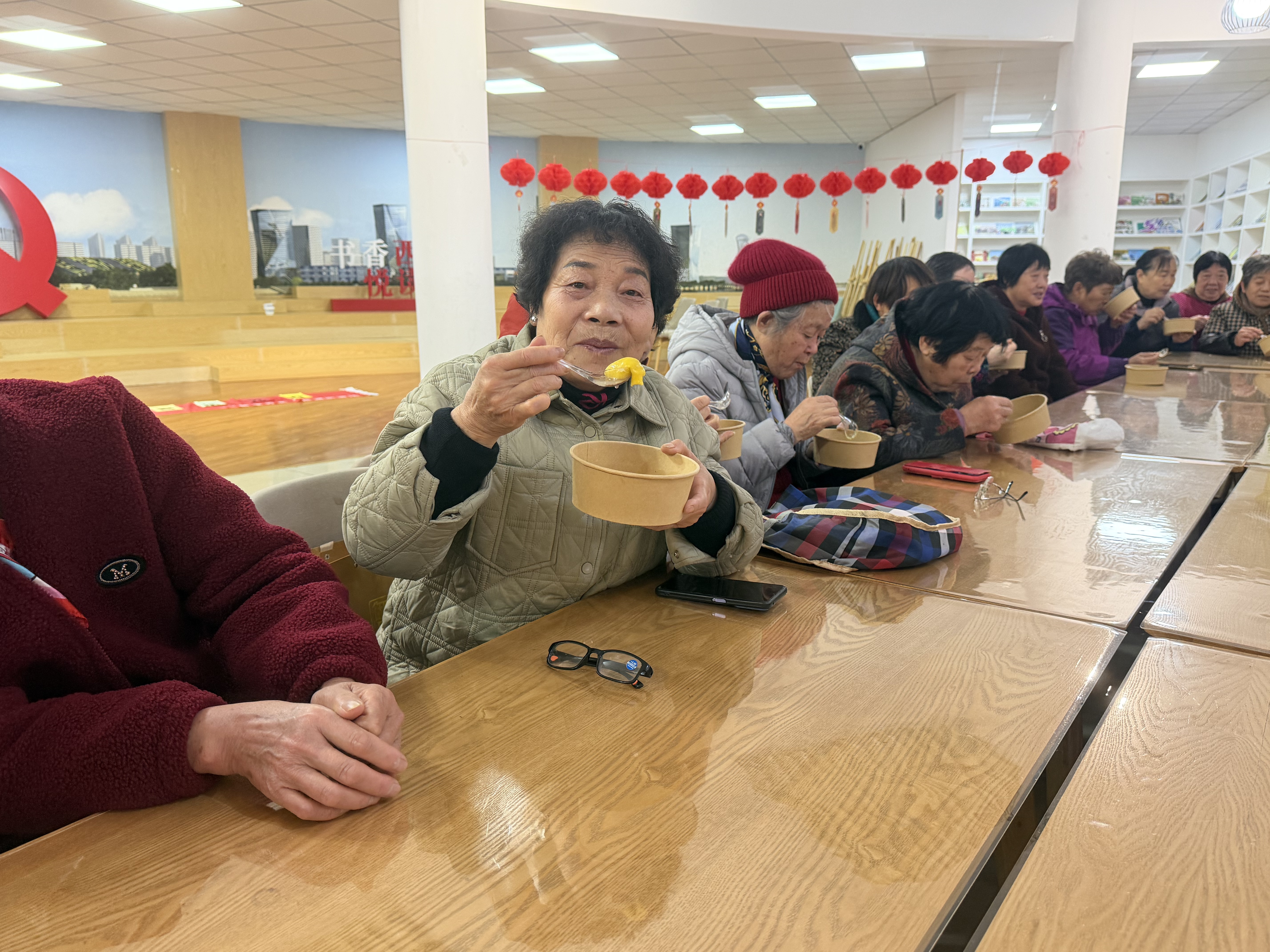 “吃汤圆咯!”随着志愿者的一声招呼,猜灯谜环节告一段落,热腾腾、香喷喷的汤圆出锅了。社区工作人员和志愿者将一碗碗汤圆端到老人们面前。老人们围坐在一起,一边品尝着香甜的汤圆,一边拉着家常,畅谈如今的幸福生活。这一碗碗汤圆,不仅暖了胃,更暖了心。