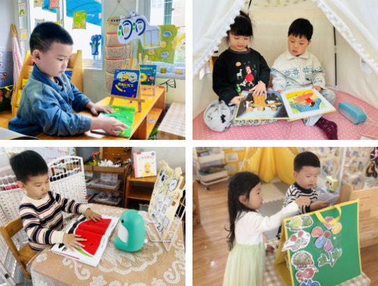 小班阶段,以趣味启蒙为核心,点亮阅读兴趣。选用画面简单、色彩鲜艳、贴近生活的绘本,借助洞洞书、布偶书等读物,开展师幼共读与亲子共读。搭配AI智能点读、有声伴读,通过多感官体验让幼儿轻松感受阅读乐趣,种下热爱阅读的小小种子。