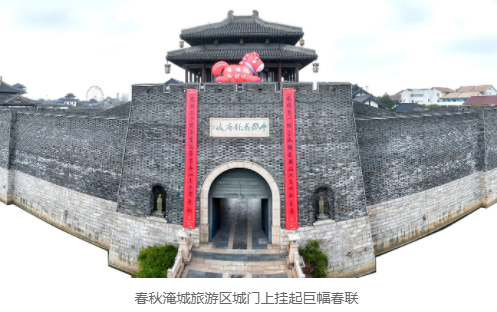 在承载厚重历史的春秋淹城旅游区,巍峨的城门上,悬挂起气势恢宏的巨幅大红春联,为这座千年遗址注入了鲜活的新春活力,也彰显出武进文旅融合的独特魅力。