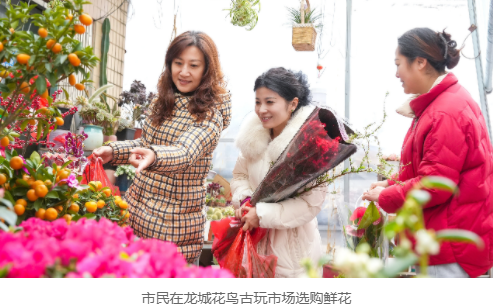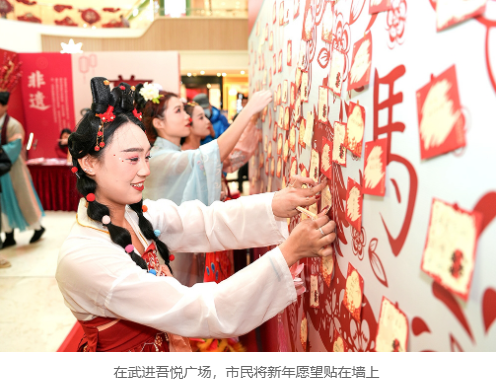 龙城花鸟古玩市场迎来销售高峰,杜鹃花、蝴蝶兰、冬青等年宵花备受青睐,市民精心挑选着心仪的花卉,为家中增添盎然生机与节日色彩。新天地公园内,一串串大红灯笼与精巧的新春主题布景将园区点缀得年味十足,成为市民游客拍照打卡的热门地点;武进吾悦广场则设置了温馨的新年许愿墙,市民们认真写下对家人、对生活、对未来的美好祝愿,寄托着对新一年的无限憧憬。