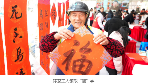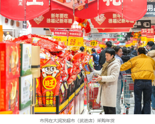 武进人民商场门口墨香四溢,本地书法名家现场挥毫,免费书写春联和“福”字。笔墨纸砚间,传统年味的温度在真诚祝福中传递,市民手捧墨迹未干的春联,脸上洋溢着笑容。大润发超市武进店内同样人头攒动,各式年货琳琅满目,一个个满载的购物车也装着人们对阖家团圆的期待。