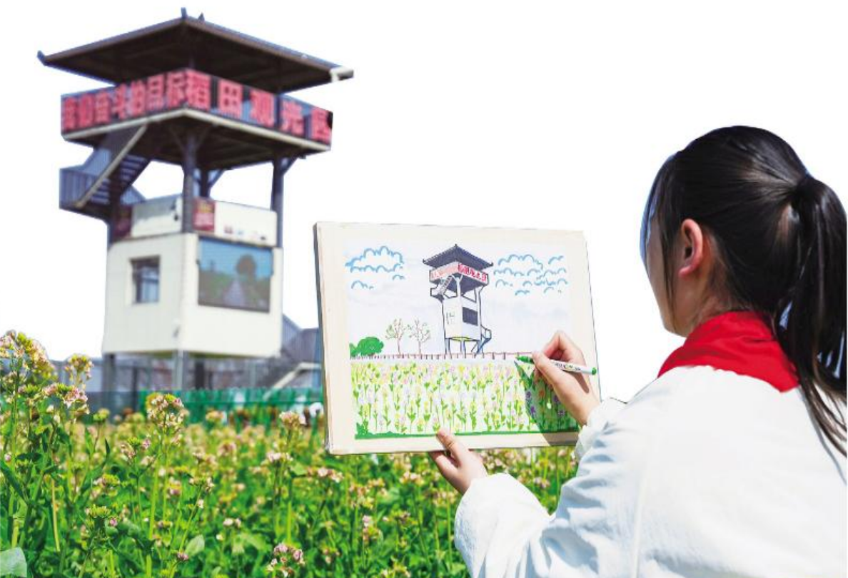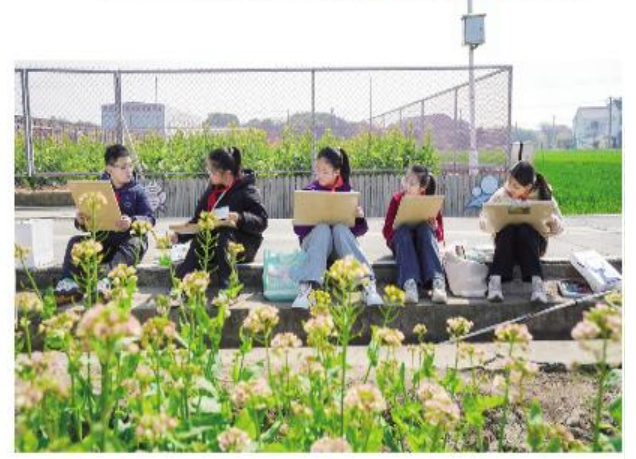 寨桥小学学生用绘画定格油菜花海美景