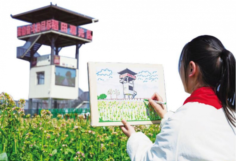 学生在田埂边绘画