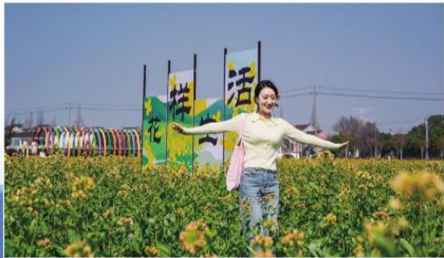 市民漫步于联庆村油菜花海