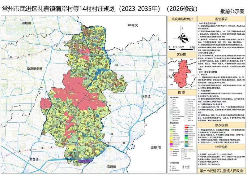 常州市武进区礼嘉镇蒲岸村等14村庄规划(2023-2035年)(2026修改)批前公示